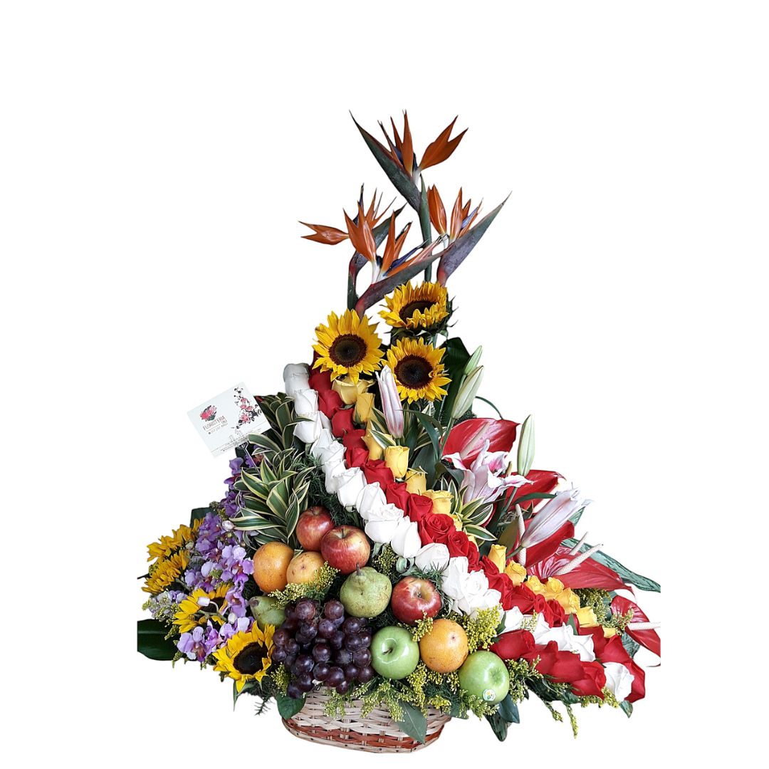 Si lo que estás buscando es; dar un agradecimiento, felicitar a alguien, dar una bienvenida, enamorar, celebrar ese momento especial, estas en el lugar correcto, Valle de Rosas Cali tiene para ti hermosos diseños en Arreglos florales con frutas para que sorprendas y disfrutes en todos tus momentos especiales. Diseños elaborados siempre con productos de la mejor calidad.
