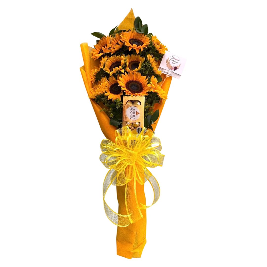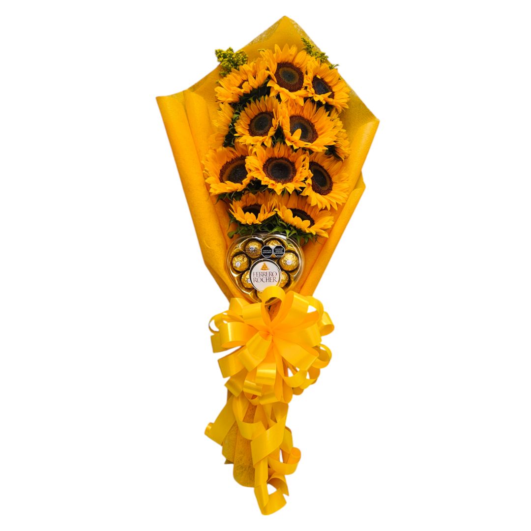 Ramo de girasoles frescos con chocolates Ferrero Rocher