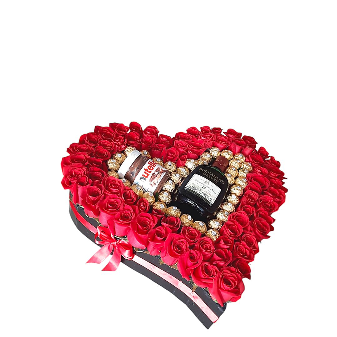 Corazón de rosas rojas con Nutella, whisky y Ferrero Rocher"