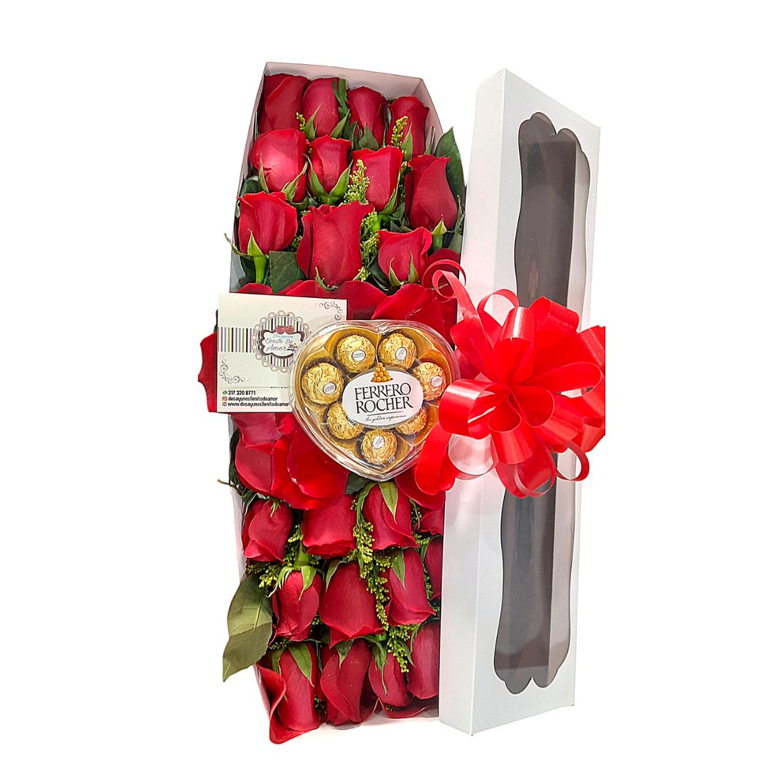 Caja de rosas rojas con Ferrero Rocher