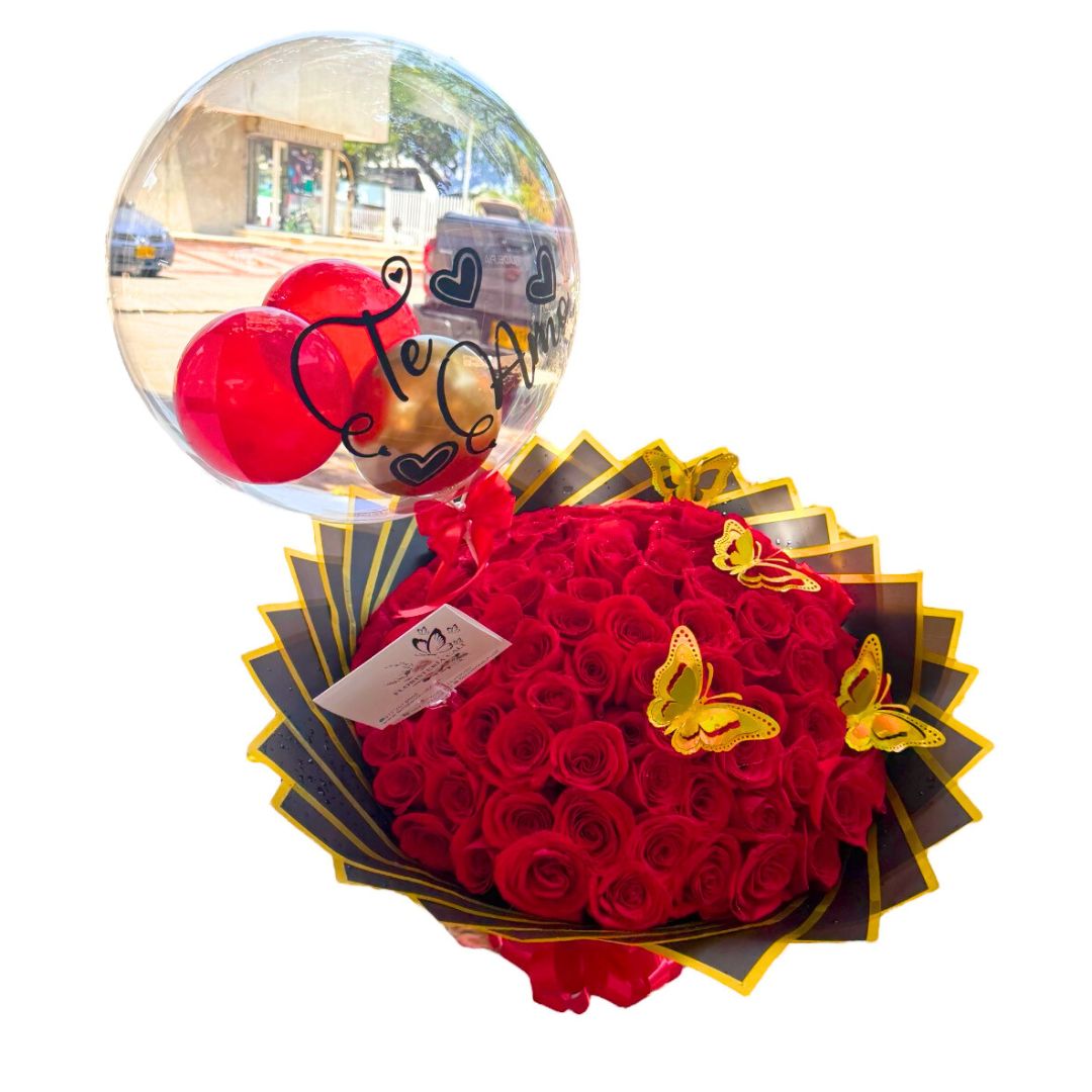 Bouquet de rosas rojas con globo personalizado Te Amo